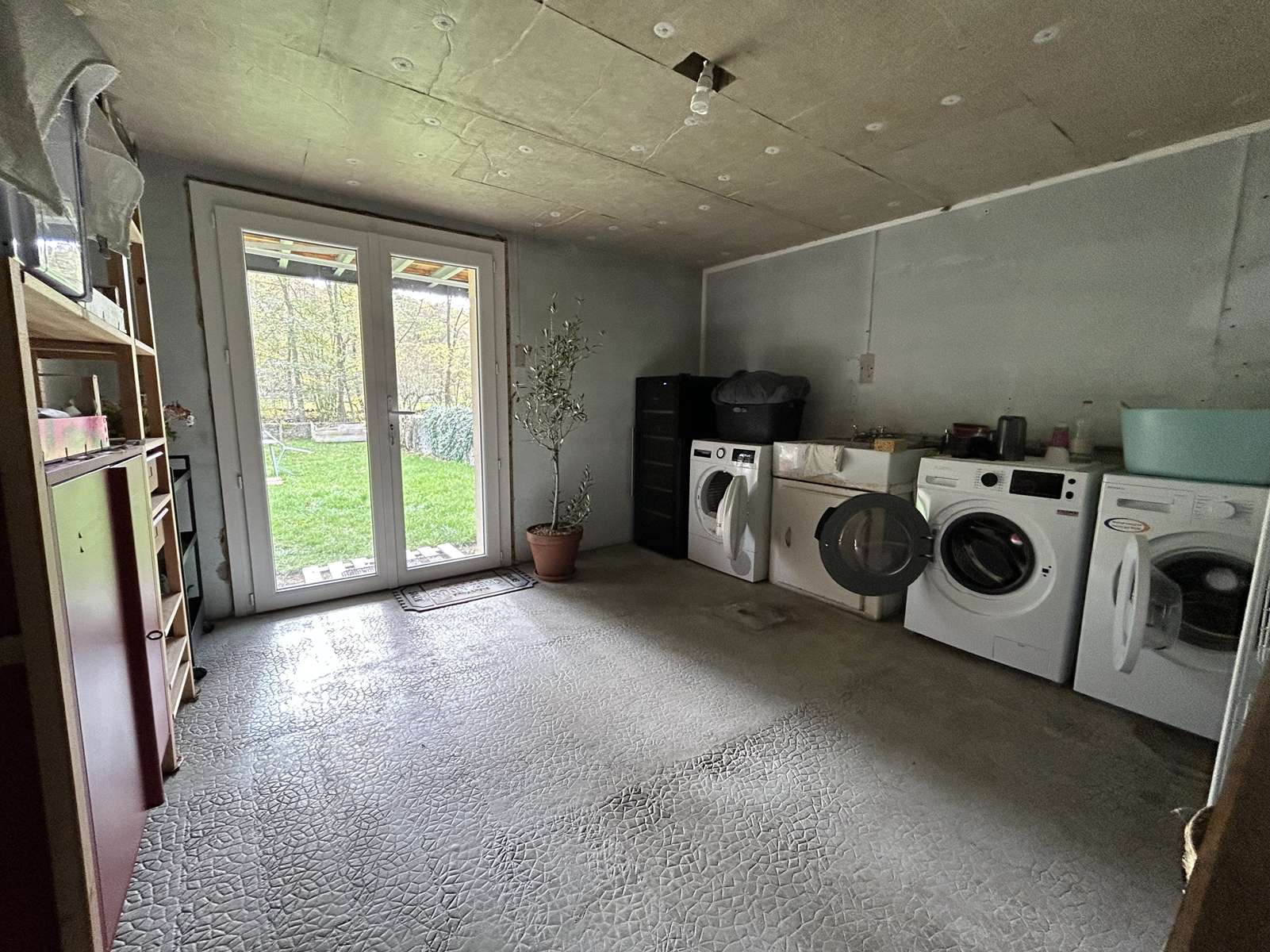 Rez de chaussée complet avec garage équipé d’une porte sectionnelle et quatre pièces dont une buanderie.