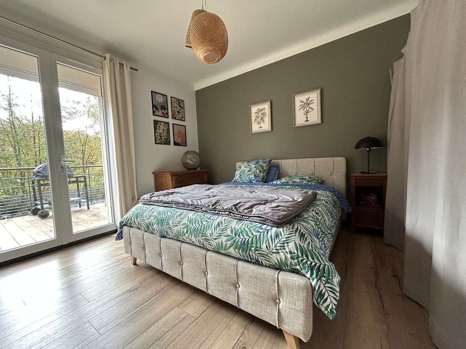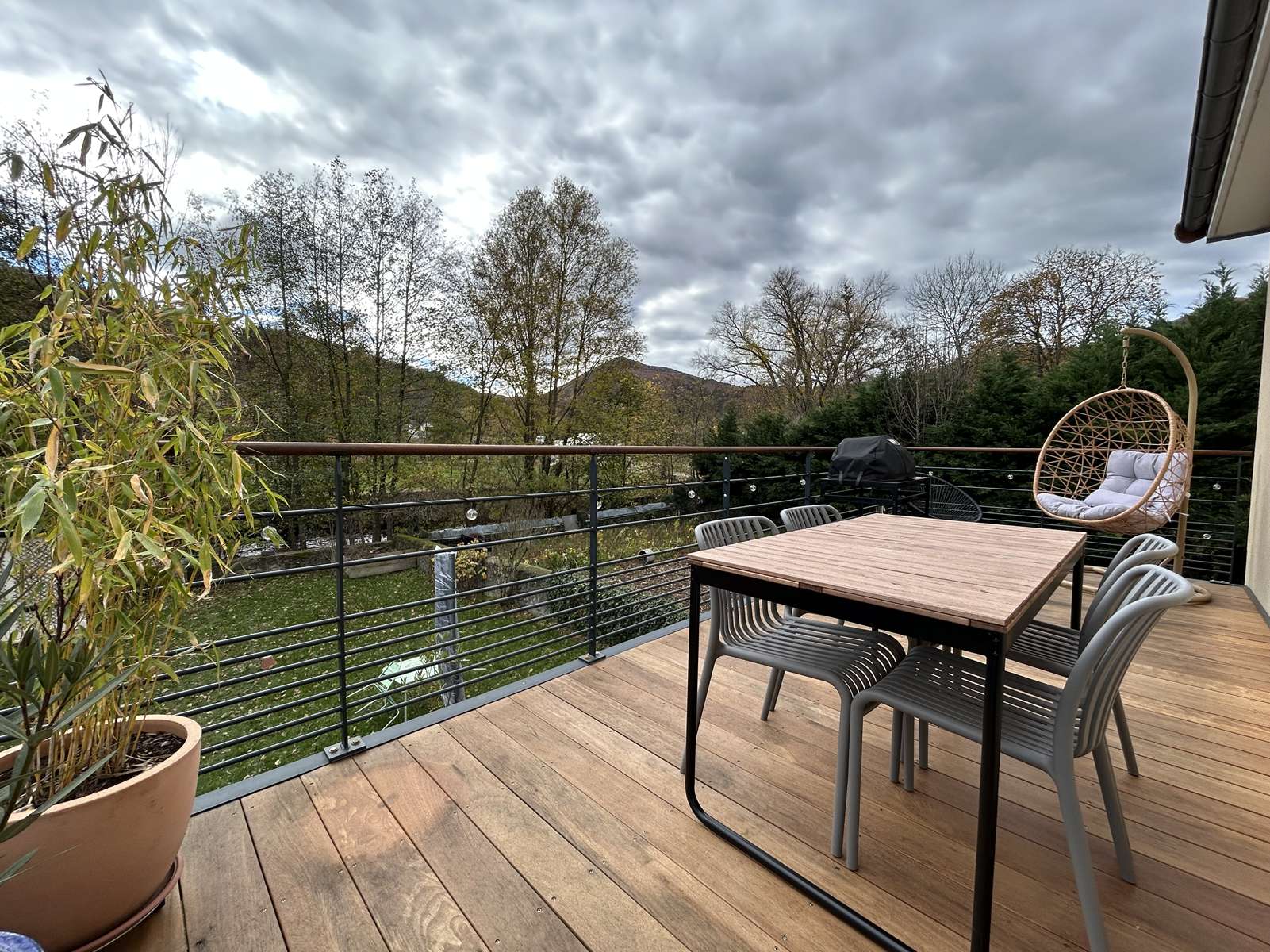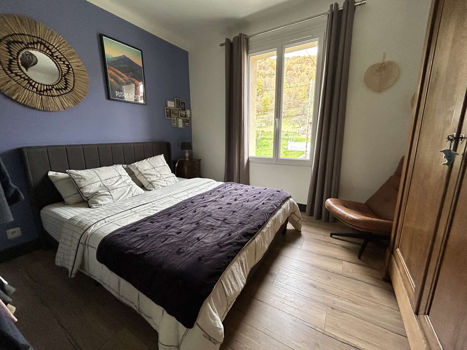 L’étage accueille une belle pièce à vivre lumineuse prolongée par la terrasse pour profiter de la vue et du ronronnement mélodieux de la couze Pavin. Grande cuisine bien équipée, deux chambres (13 et 11m2) dont une avec accès à la terrasse, salle d’eau magnifique, toilettes indépendantes.