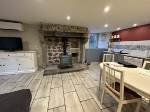 Grande pièce à vivre avec cuisine équipée ouverte. Ancien cantou. Coin couchage, placard. Belle salle d’eau, wc. Remise et buanderie avec entrée indépendante pratique lors de vos retours de randonnées.A l’étage dans l’ancienne grange vous disposerez de 60m2 de plancher (dalle sur ourdis) pour mettre en œuvre votre projet. Chauffage par pompe à chaleur (air/air).