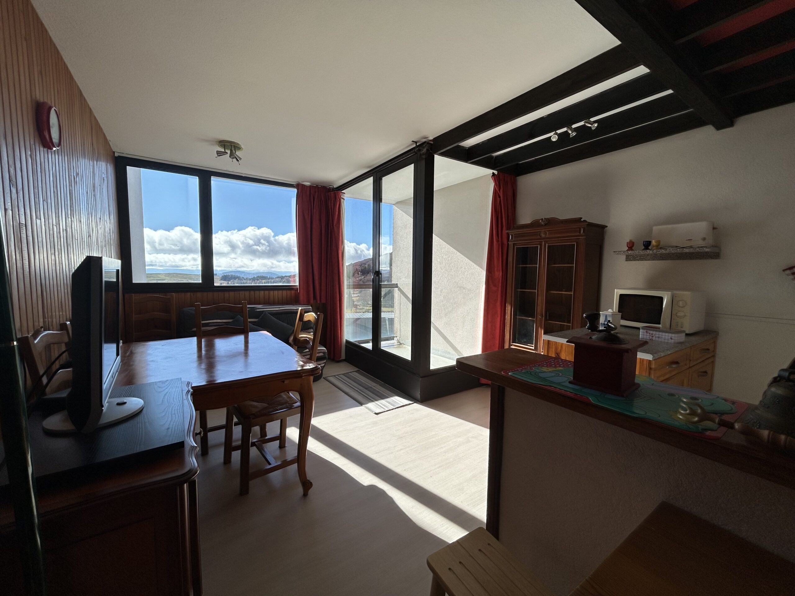Pour cet appartement exposé plein sud. Ensemble agréable grâce aux larges baies vitrées. Habitable de suite. Belle pièce à vivre avec cuisine ouverte, loggia, salle de bains-wc, chambre spacieuse avec quatre couchages possibles. Situé dans le centre de la station de Superbesse, dans la résidence "Les Myrtilles" ; la vie quotidienne en station sera facile grâce à la proximité des commerces et services, accès rapides aux remontées mécaniques sans navette. C’est une résidence agréable et à taille humaine. Les charges sont maitrisées avec une quote part de 285€ par trimestre, taxes foncières 647€. Local à skis en rez de chaussée. La vue est magnifique et dégagée sur l’ensemble du domaine de montagne et sur la station, en arrière-plan la chaine du Cantal se dévoile, spectaculaire au couchant!